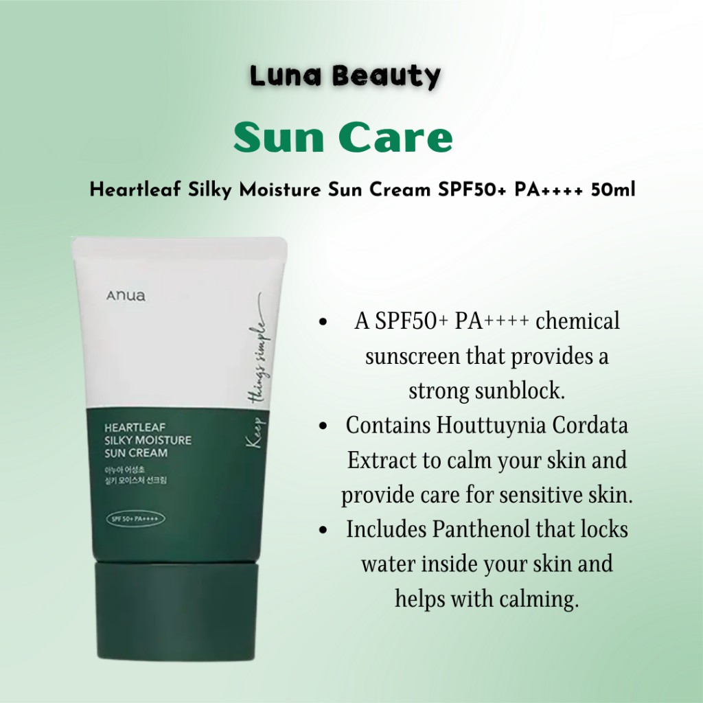 Anua Heartleaf Silky Moisture Sun Cream SPF 50+ PA++++ 50ml