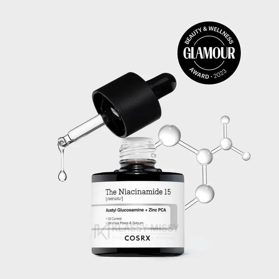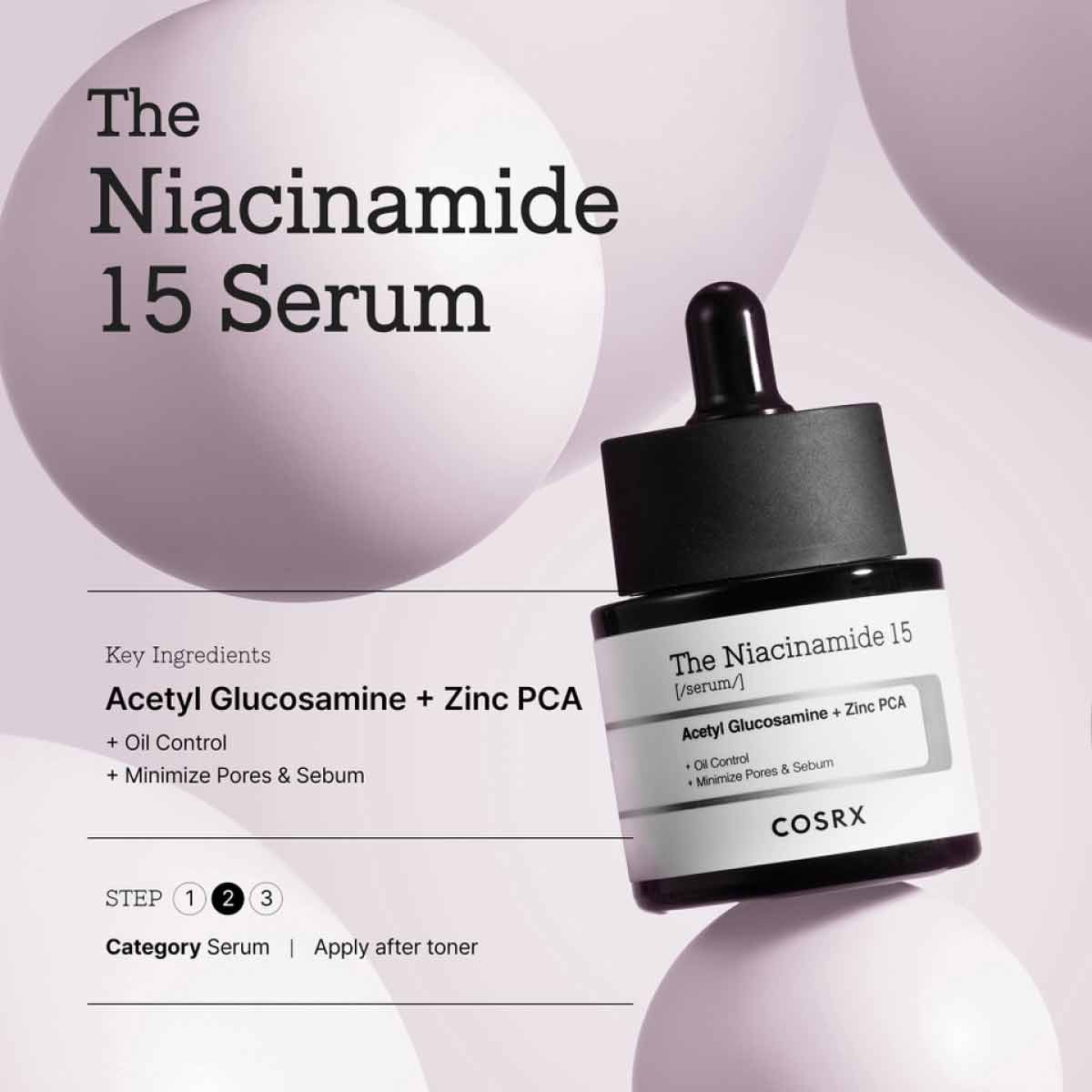 Cosrx The Niacinamide 15 Serum (Suitable For Oily & Combination Skin Type) 20ml.A Total Acne Care Serum containing highly concentrated niacinamide (15%) for mild exfoliation, sebum control, and antibacterial effects, giving you a smooth, fresh, problem-free skin.Effectively treats acne, including papule, pustule, cyst, and at the same time strengthens the skin barrier.