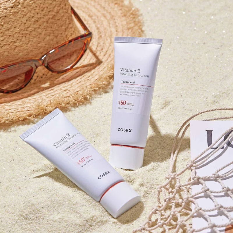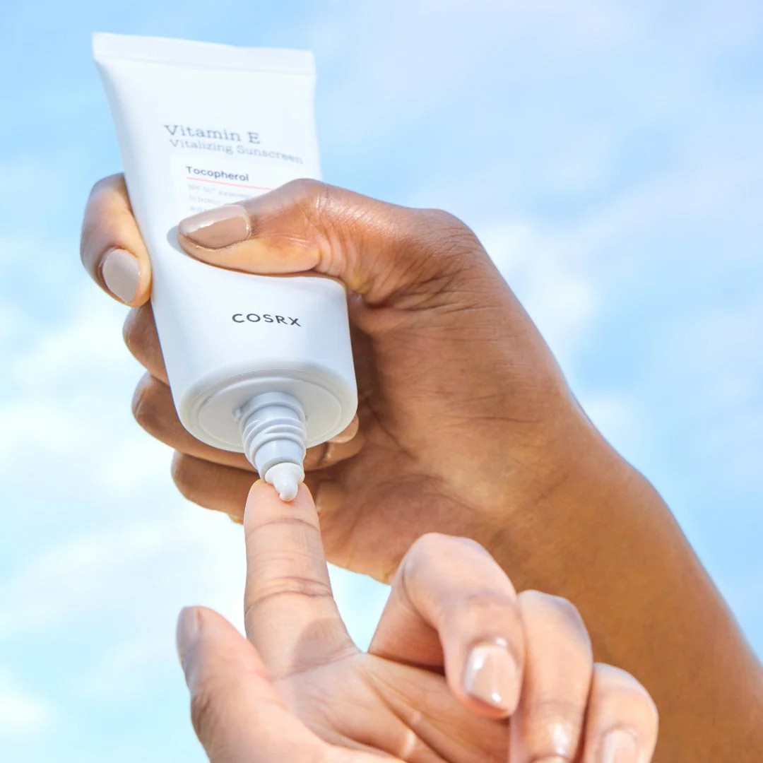 The COSRX Vitamin E Vitalizing Sunscreen SPF 50+ is a reef-friendly, chemical sunscreen designed to provide broad-spectrum UVA and UVB protection with a moisturizing, antioxidant-rich formula. It is formulated for all skin types, including sensitive skin, and is known for its lightweight texture and lack of white cast.