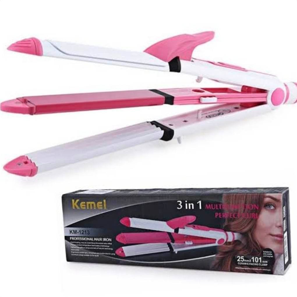 Kemei KM-1213 Straight, Curl & Crimp 3 in 1 Straightener