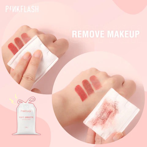 PINKFLASH Make-Up Cotton 100% Natural Smooth Texture Cottons Pads Facial Cleansing Cotton [Natural Materials] 100% natural and uniquely manufactured; [Two-layer Design] One can divided into two and won't waste; [Soft and fine] The pads are soft and fine, and will not rub against the skin.