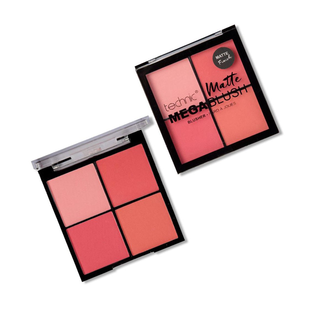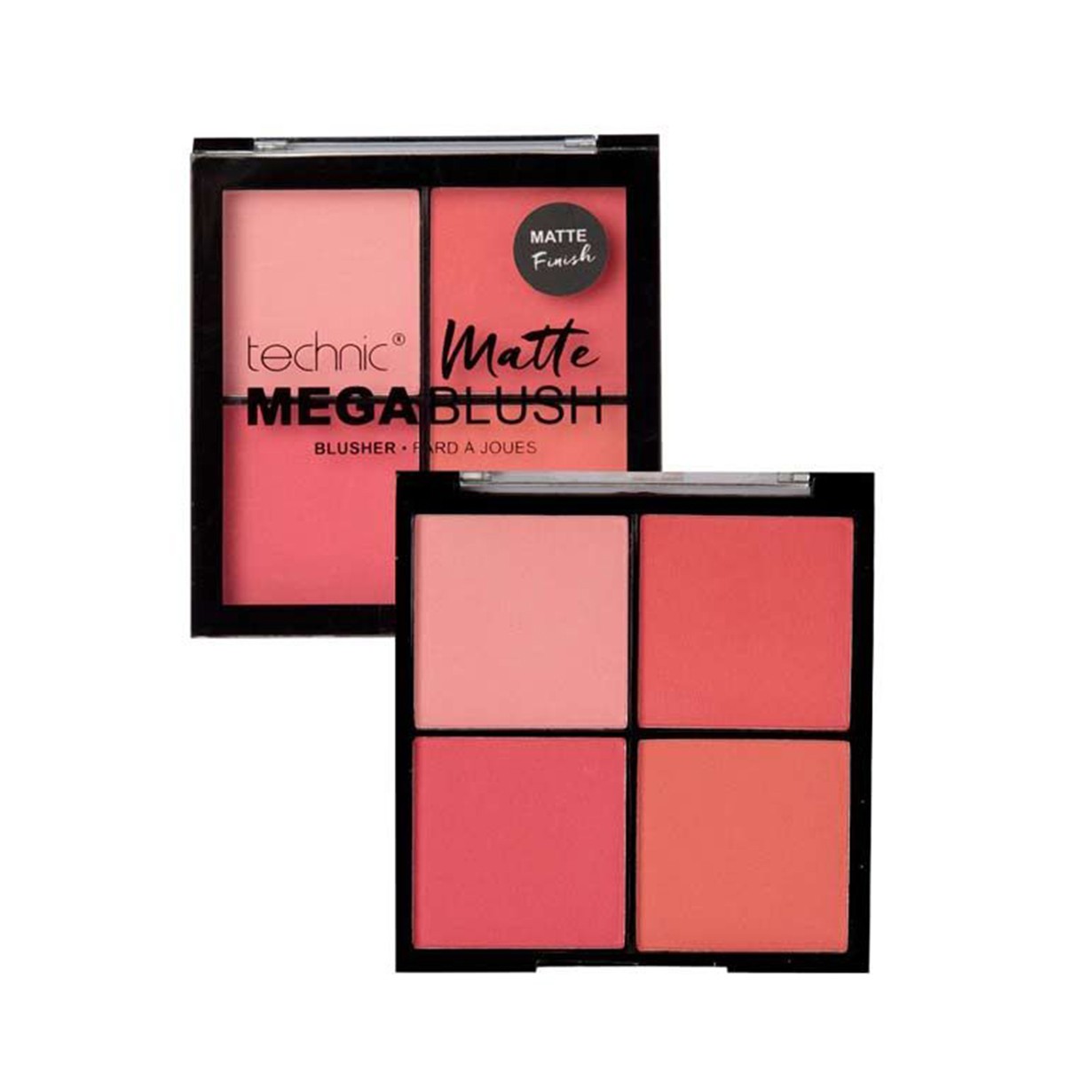 The Technic Mega Matte Blush Palette is a compact, four-shade powder blush palette known for its highly pigmented, blendable formula. The shades are designed to deliver a warm, natural-looking pink glow to the cheeks with a smooth, matte finish.