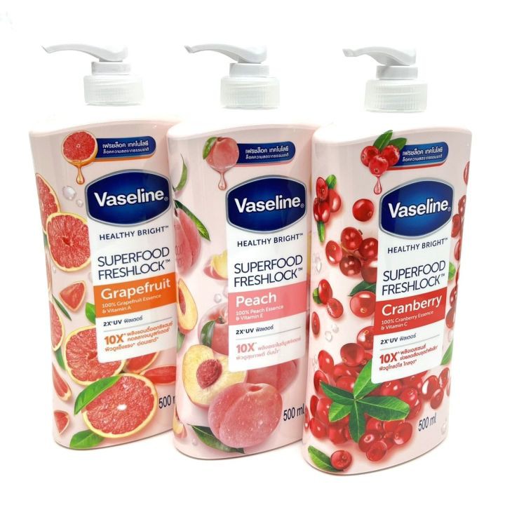 - Vaseline Healthy Bright Superfood Freshlock Grapefruit Body Lotion: Formulated with 100% natural grapefruit extract, this lotion contains Vitamin A and a collagen booster. Some retailers note it also has a double UV filter for sun protection.