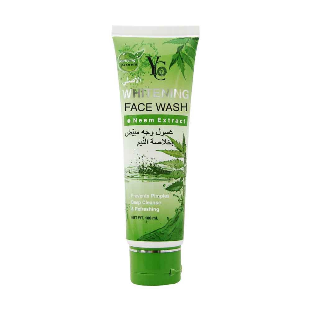 YC Neem Wash is a whitening face wash containing neem extract from Thailand, designed to deep cleanse, prevent pimples, and reduce excess oil. Key benefits include deep cleansing, detoxifying the skin, controlling oil, and providing a refreshing feeling. The herbal formula uses neem's antiseptic properties to fight acne and rashes, promoting a brighter and soothed complexion. It comes in a 100ml tube and is suitable for daily use on all, especially oily, skin types.