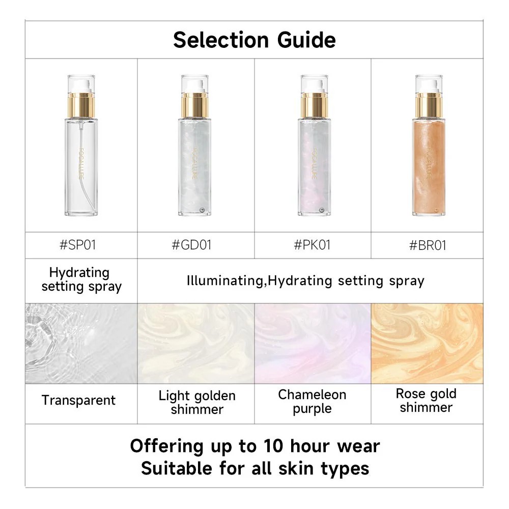 A must-have hydrating setting spray with delicate shimmer, for creating a diamond-like base makeup.